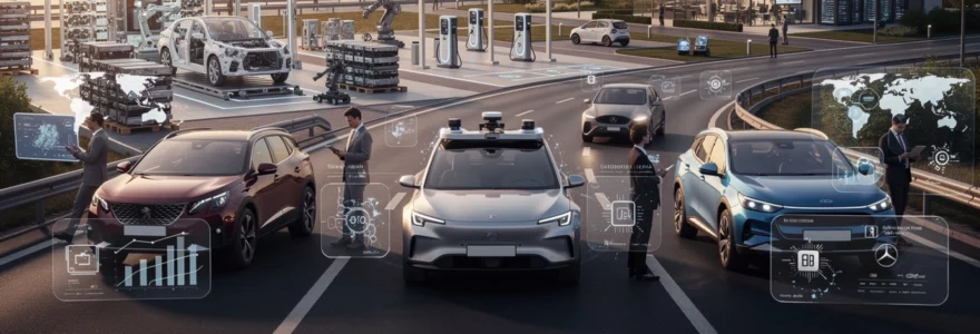 Les constructeurs chinois ne se contentent plus de leur marché domestique, devenu le premier marché automobile mondial. Des groupes comme BYD, NIO ou Geely (propriétaire de Volvo et Polestar) déploient des stratégies offensives en Europe, avec des gammes 100 % électriques ou fortement électrifiées. Leur avantage compétitif repose sur la maîtrise de la batterie (BYD fabrique ses propres cellules), des coûts de production plus faibles et un positionnement produit très technologique (intérieurs digitaux, ADAS avancés, mises à jour OTA).