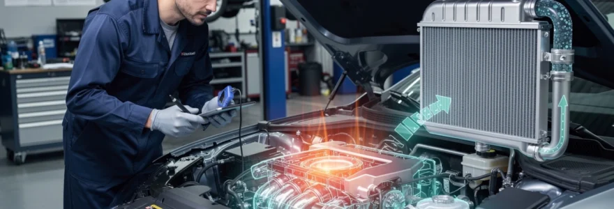 air, ainsi que de la qualité du liquide de refroidissement. Un radiateur encrassé, un ventilateur défaillant ou un liquide dégradé réduisent considérablement cette capacité d’évacuation thermique, ce qui se traduit rapidement par une surchauffe moteur, surtout en circulation urbaine dense ou en montagne.